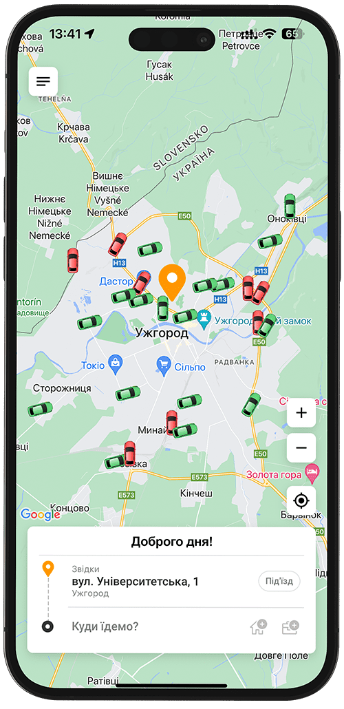 Ви можете замовити авто через мобільний додаток і розрахуватися за допомогою платіжної картки.